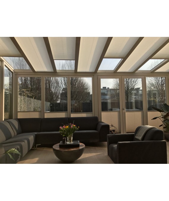 De Splendid Terrasoverkapping is een raamdecoratie- en zonwering product ineen, speciaal ontwikkeld voor onder een terrasoverkapping.